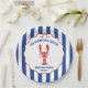 Give your bridal shower a nautical touch with these personalized paper plates. All the text is ready for your custom touch including the slogan at the top, the event name and the date. They feature my realistic style hand drawn illustration of a lobster in red with your text in blue. The text and graphic are set inside a hand drawn scalloped frame with a ribbon look and a bow at the top set against a blue and white nautical striped background.