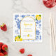 She Found Her Main Squeeze bridal shower napkins features blue flowers, yellow lemons, and black and yellow text.