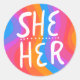 SHE/HER Pronouns Rainbow Handlettering Runder Aufkleber
