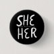 SHE/HER Pronouns Schwarz-weiße Handschrift Minimal Button