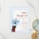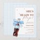 Celebrate your baby shower with this “She Is Ready to Pop” invitation featuring a charming soda pop illustration, soft blue tones, gingham background, and coquette bow details. Perfect for a preppy and playful baby shower theme, this invitation sets the tone for a coordinated and stylish celebration. Designed to match a full baby shower collection.