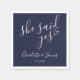 This stylish navy blue "she said yes" engagement party napkin can be personalized with your engagement party details. Designed by Thisisnotme©