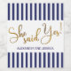 A modern gold script text with She Said Yes in a minimalistic style with your custom names below in a simple modern font.