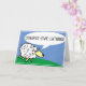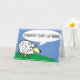 Sheep Design Gratulationskarte hat ein Cartoon Schafe mit dem Worn "Congrat-ewe-lations". Cartoon-Abbildung eines Schafes in einem grünen Feld gegen einen blauen Himmel.