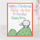 Frohe Weihnachten für einen Buchmacher. Der sonnige Cartoon eines Schafes auf einem Hügel. Das Schaf sagt "Best Baa None". Fügen Sie eine Nachricht vom Absender hinzu.