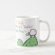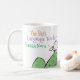 Tasse für einen Sprachlehrer. Der sonnige Cartoon eines Schafes auf einem Hügel. Das Schaf sagt "Best Language Teacher Baaa None". Design wiederholt sich auf beiden Seiten.