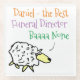 Getränke Untersetzer für einen Beerdigungsdirektor. Der sonnige Cartoon eines Schafes auf einem Hügel. Das Schaf sagt "Best Baa None". Design-Wiederholungen auf beiden Seiten