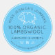 Ideal für handgearbeitete Strickwaren und handgesponnene Wolle. Personalisieren Sie mit Ihren eigenen Wollprodukten Firmennamen und andere Produktdetails und eigenes Logo oder verlass der Kontur Schafe zur Verfügung gestellt. Geben Sie Ihrem Gut eine berufliche Touch zum Verkauf an Märkten oder online. Einfache Grafik-Line-Art in einfachen, weißen Text-Logos für Schaf- und Kleidungspflege auf himmelblauem Hintergrund. Andere Farben und Designs zur Verfügung und Wünsche werden durchgeführt. Kunst und Design von Sarah Trett für www.mylittleeden.com auf zazzle.