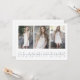 Die moderne Abschluss Foto Party Einladung umfasst drei Ihrer Lieblings-Fotos, die nebeneinander angeordnet sind, wobei die "Klasse des Jahres 2023" unter der eleganten grau-blauen Schrift dargestellt wird. Personalisieren Sie mit Ihrem Namen und der Schule auf einem schieren weißen Streifen Overlay. Karten werden umkehrt, um die Details Ihrer Graduiertenparty zu enthüllen. Eine elegante und moderne Wahl für 2023 Absolventen.