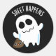 Sheet Happens Funny Ghost Pun Dark BG Runder Aufkleber