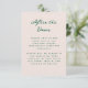 For the epically chic and modern couple, invite guests to a modern and elevated wedding with coastal Italian tennis club vibes in sun-washed pale pink. This reception information enclosure card is sleek and chic with dark green text to direct guests to cocktail hour, the reception and other post-wedding events. This design mixes modern sans serif type with a hand-written style script for an elevated but still casual vibe fit for any chic venue, from beach club to tennis club and beyond.