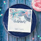 Die Cocktail-Servietten am Strand sind mit Seestern und Muscheln in Aquarellfarbe und handgeschriebenen Stilschriften in Schieferblau versehen. Ideal für Hochzeiten, Jubiläumsfeiern und Duschfeiern zum Thema Wassersport und Küstenschifffahrt. Kunst von KL Stock
