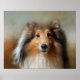 Immer auf der Awarnung, dieser Sheltie, Shetland Schafhund wird auf einem farblich kontrastreichen Hintergrund angezeigt. Hunde Foto Kunst.