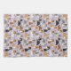 Niedliche Shetland Sheepdog Hunde sitzen und stehen und rollen mit Einweg-, Dreifarben-, Merle- und Weißmäntel mit verstreuten Hundeknochen und Pappprints.