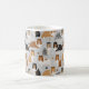 Niedliche Shetland Sheepdog Hunde sitzen und stehen und rollen mit Einweg-, Dreifarben-, Merle- und Weißmäntel mit verstreuten Hundeknochen und Pappprints.
