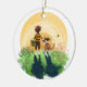 Sheltie Dog and Boy Walk in Sunset Keramik Ornament