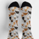 Niedliche Shetland Sheepdog Hunde sitzen und stehen und rollen mit Einweg-, Dreifarben-, Merle- und Weißmäntel mit verstreuten Hundeknochen und Pappprints.