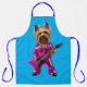 An apron featuring a Sheltie wearing a satin hot pink oufit and playing a hot pink guitar.