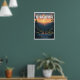 Die ruhige Schönheit des Shenandoah-Nationalparks mit diesem atemberaubenden Plakat erfassen. Genießen Sie einen atemberaubenden Sonnenuntergang über den blauen Ridge Mountains, üppige Pinienbäume und Wanderer, die die ruhige Landschaft genießen.