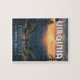 Die ruhige Schönheit des Shenandoah-Nationalparks mit diesem atemberaubenden Plakat erfassen. Genießen Sie einen atemberaubenden Sonnenuntergang über den blauen Ridge Mountains, üppige Pinienbäume und Wanderer, die die ruhige Landschaft genießen.