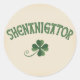 Ein Schenigator ist ein Anstifter von Schenanigern. Grüner Text mit einem Kleeblatt, auf T - Shirt, Karten, Geschenkartikel.