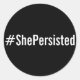 #ShePersisted, weißer Text auf schwarzen Aufkleber