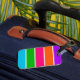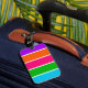 Sherbet Streifen Hot rosa, hell lila, Limettengrün, orange und aqua blau gestaltete Gepäckmarke. Von https://www.zazzle.com/store/celestesheffey