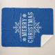 Diese warme und gemütliche Sherpa-Decke wird mit einem großen, fröhlichen Weihnachtsschneeflottdruck in mattiert Weiß über einer Sapphire Blue Hintergrundfarbe gezeigt. Passen Sie diese Decke an oder kaufen Sie, wie es ist. Stock Image freepik.com all-free-download.com