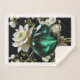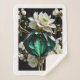 An imaginary flower design with a large emerald bud surrounded by white blooms covers this Sherpa Blanket.