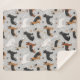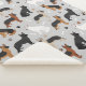 Niedliche Deutsche Schäferhunde in Schwarz und Bräune, Schwarz und Rot, Schwarz und Silber, Weiß und Rücken mit verstreuten Hundeknochen und Pfotendrucken auf hellgrauem Hintergrund.