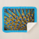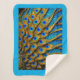 A design of blue and gold peacock feathers covers this lovely Sherpa Blanket.
