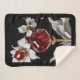 An imaginary flower with a large ruby bud is surrounded by snow white petals and leaves.