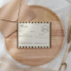 Birthday recipe enclosure card featuring a hand-drawn cake with bows and a coffee mug paired with elegant script and serif fonts in which your personalized information is written. The background is brown stripes on a light background. Check out our store for more items from this collection.