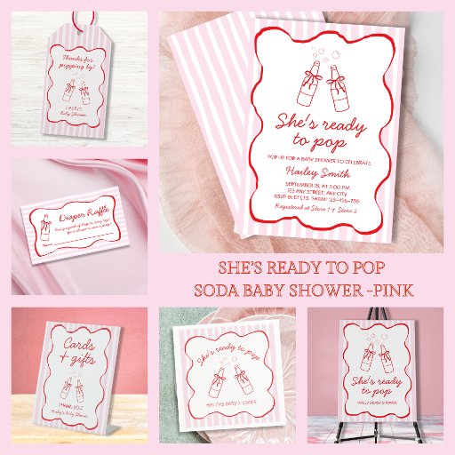 She's Ready To Pop Red Soda Bottle Baby Shower Einladung