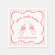 Add a playful touch to your celebration with these She’s Ready to Pop baby shower napkins. The design features cute hand-drawn soda bottles tied with bows, surrounded by a whimsical wavy frame and soft striped background. The pink, red, and white color palette creates a cheerful, coordinated look, while the handwritten-style text adds a warm and personal feel. Perfect for table settings, dessert displays, drink stations, or pairing with matching Ready to Pop décor.
