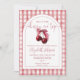 This stylish baby shower invitation, featuring cherries and bow, elegant script typography and arch on a gingham background, can be personalized with all your special baby shower details. Designed by Thisisnotme©