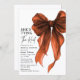Make a stylish first impression with this She’s Tying The Knot QR Code Bridal Shower Invitation, designed for modern brides who love timeless elegance. Showcasing a coquette rust orange watercolor bow paired with an elegant rust orange and white theme, this invitation blends romantic femininity with chic minimalism.