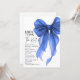 Make a stylish first impression with this She’s Tying The Knot QR Code Bridal Shower Invitation, designed for modern brides who love timeless elegance. Showcasing a coquette blue watercolor bow paired with an elegant blue and white theme, this invitation blends romantic femininity with chic minimalism.