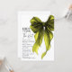 Make a stylish first impression with this She’s Tying The Knot QR Code Bridal Shower Invitation, designed for modern brides who love timeless elegance. Showcasing a coquette chartreuse green watercolor bow paired with an elegant green and white theme, this invitation blends romantic femininity with chic minimalism.