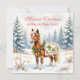 Eine super niedliche Weihnachtskarte, die Sie mit Ihrer eigenen Botschaft personalisieren können. Das ist eine Aquarellillustrierung eines Shetland Pony, stehend in einem skurrilen Urlaubsfeld während eines schneebedeckten Wintertages mit Kiefernbäumen.