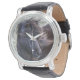Uhr, Klassische Damenuhr mit schwarzen Lederarmband