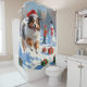 Shetland Sheepdog läuft Schnee mit Weihnachtshut Duschvorhang