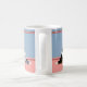 Ihr Monogramm auf dieser hellblauen Tasse mit einer Reihe von 4 verschiedenen Shetland Sheepdogs. (Sable, Tri und Blue Merle) mit rosa Streifen.