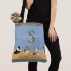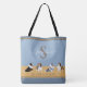 Ihr Monogramm auf dieser hellblauen Tasche mit einer Reihe von 4 verschiedenen Shetland Sheepdogs. (Sable, Tri und Blue Merle) mit gelben und braunen Streifen.