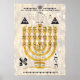 Diese Menorah wird mit den hebräischen Buchstaben und den Initialen von Ana b'Koach überlagert. Die vier Welten werden um den zentralen Stock der Lampe kartiert.