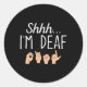 Shhh i'm Deaf ASL Zeichensprache Gehörverlust bewu Runder Aufkleber