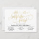 Diese moderne Überraschungsfeier lädt mit einem weißen Hintergrund mit einem gelben Drehbuch auf der Vorderseite mit moderner Typografie ein. Das Drehbuch auf der Vorderseite sagt "shhh... Es ist ein überraschendes Party!"