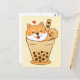 Niedlicher Kawaii Shiba Hund in einer Tasse Boba Milchtee auf gelbem Hintergrund.