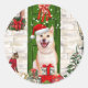 Shiba Inu Dog Weihnachten sitzen außerhalb dekorierten Zuhause mit Weihnachtskranz, Weihnachtsbaum ist eine perfekte Weihnachtsgeschenk Idee für Hundefreunde.