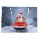 Shiba Inu Hund im Schnee sitzen im Weihnachtswagen Große Geschenktüte